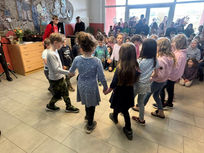 Am Dienstag feierten wir unsere eigene Faschingsparty in der Turnhalle. Mit Musik und viel guter Laune wurde getanzt – besonders beim Luftballontanz und beim Zeitungstanz hatten alle großen Spaß.